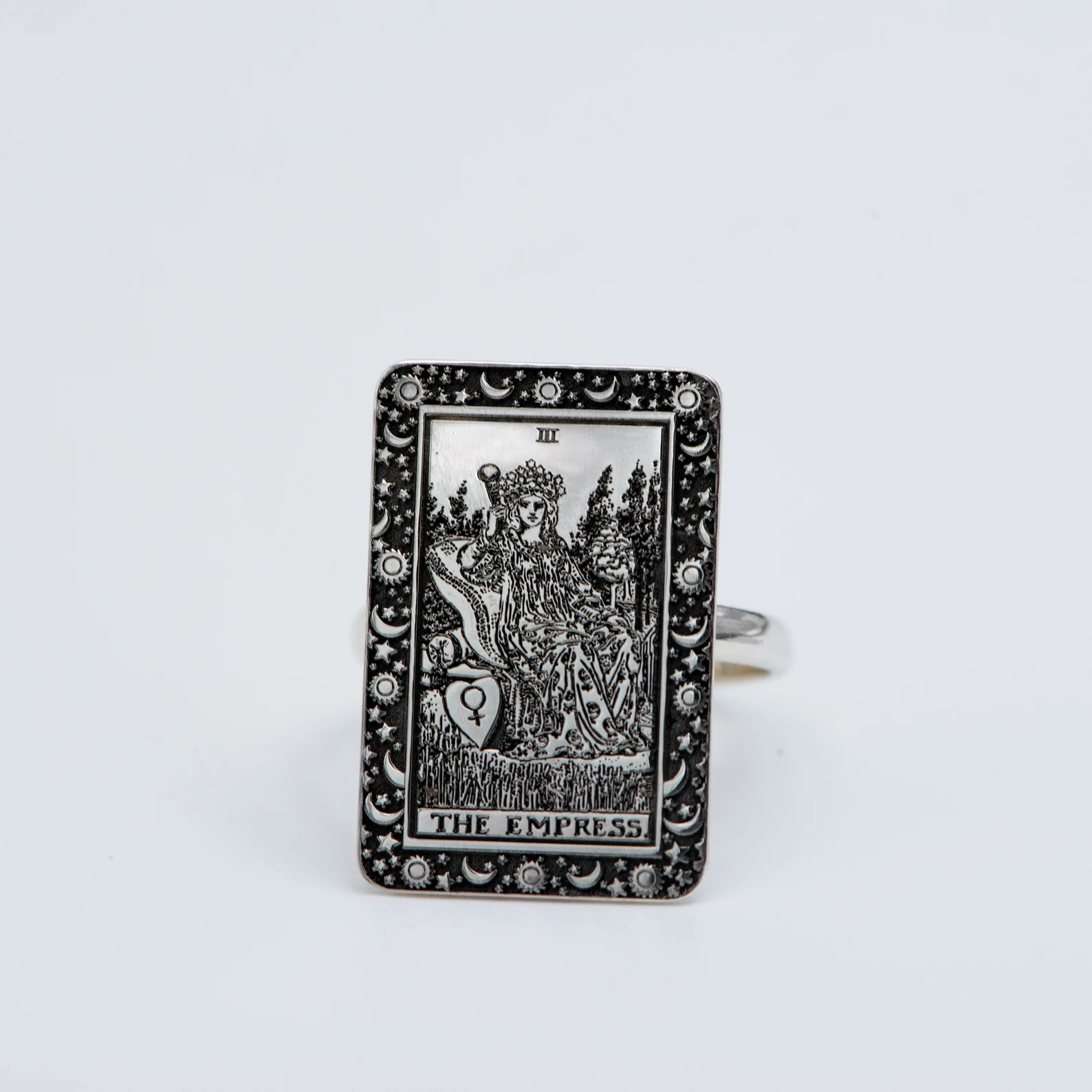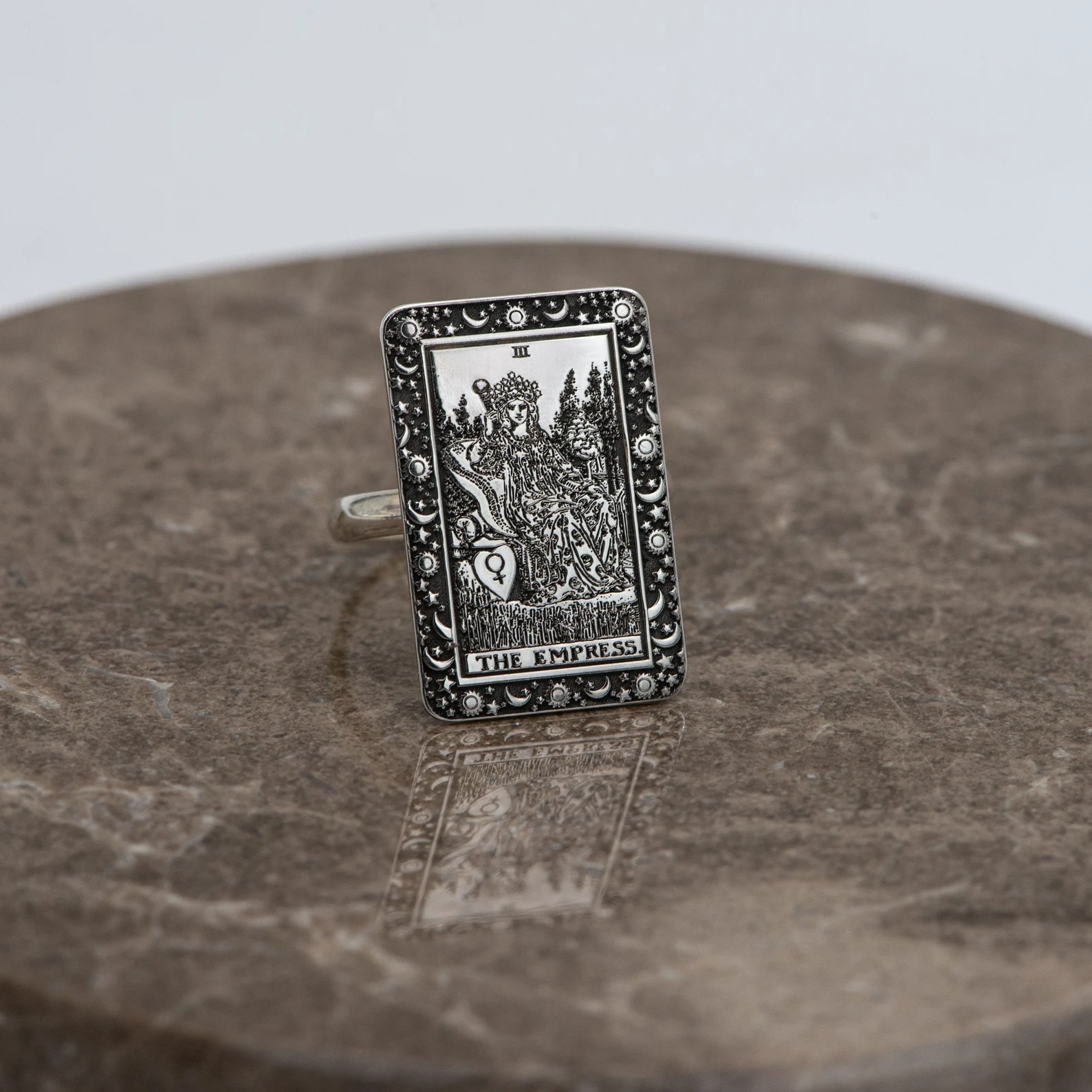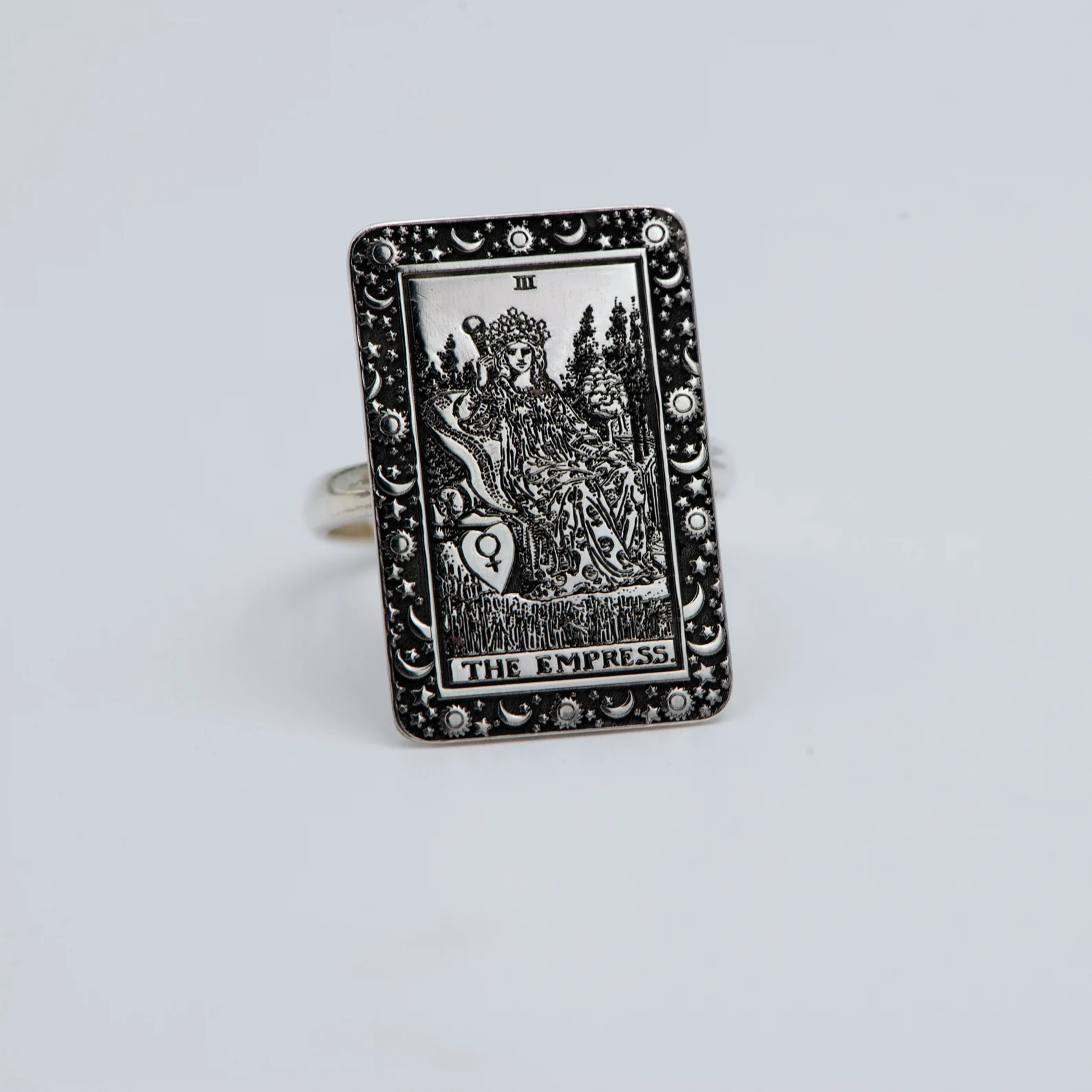♥ Celebrate the power and grace of The Empress with our Sterling Silver Tarot Ring. The Empress, one of the most iconic cards in the Tarot, symbolizes creativity, abundance, and nurturing energy. Handcrafted with care, this ring is perfect for those who appreciate astrology, tarot, and the deeper meanings of life. Whether worn daily or on special occasions, this handmade piece is a thoughtful gift for tarot enthusiasts, moms, or anyone who values personal growth and empowerment. We also offer free engraving on the inside of the ring, allowing you to add a personal message or name to make it uniquely yours.